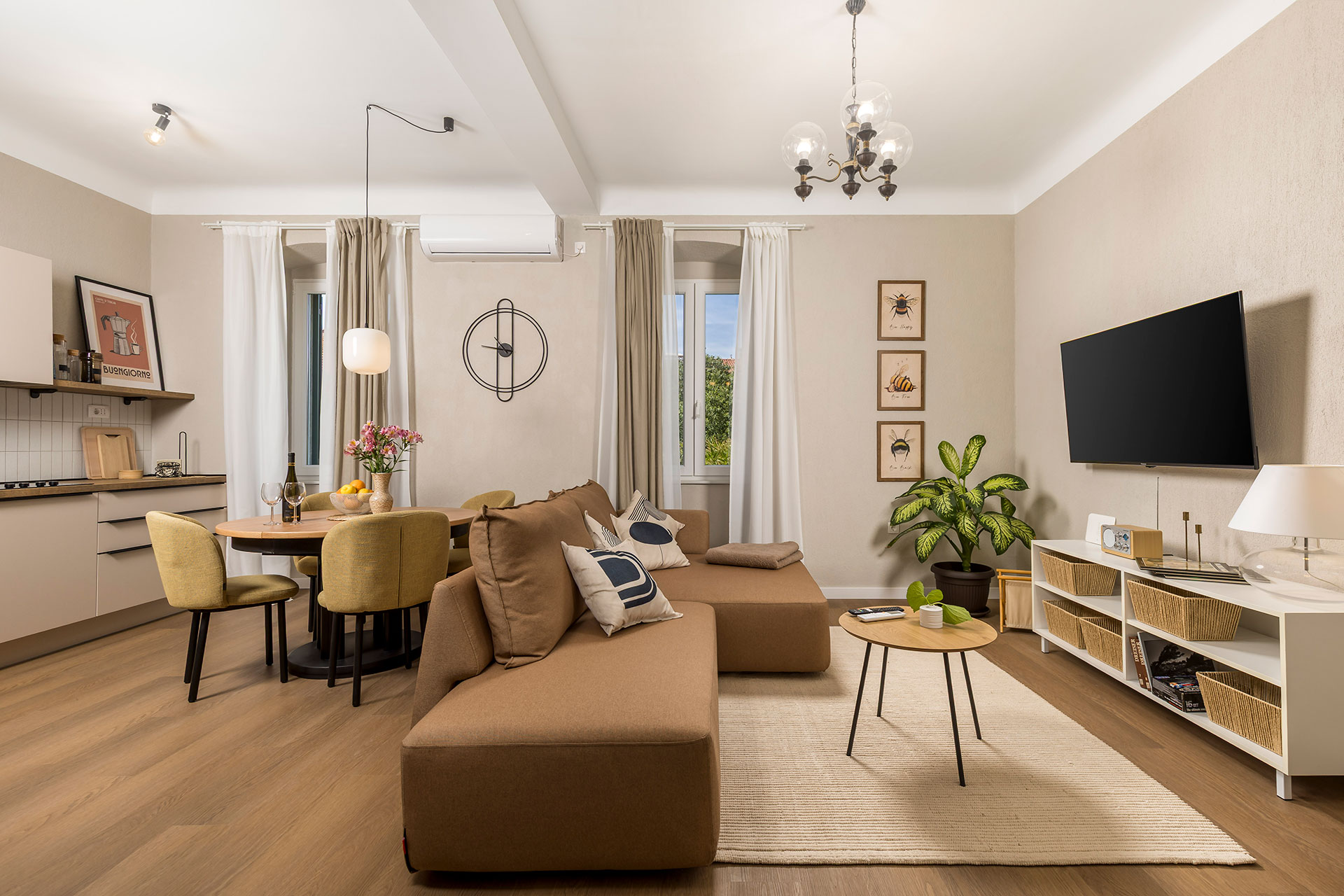 Odrađena je adaptacija cijelog stana veličine 50m2. Izmijenjen je tlocrt kako bi se omogućila bolja komunikacija između prostorija u stanu.Stan – galerija Krk